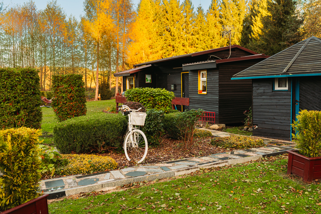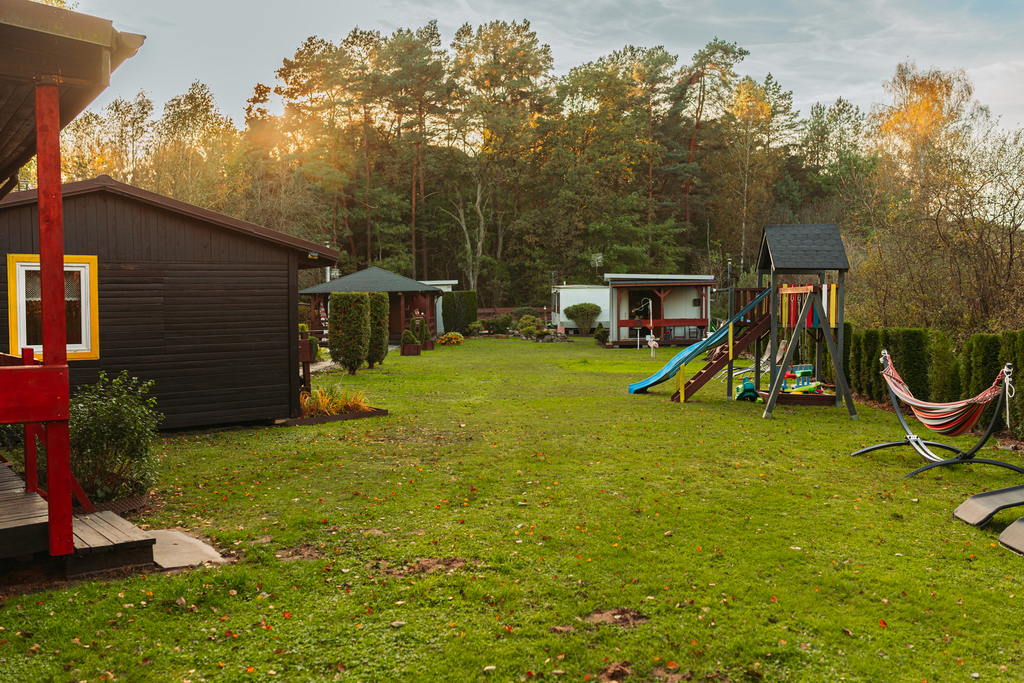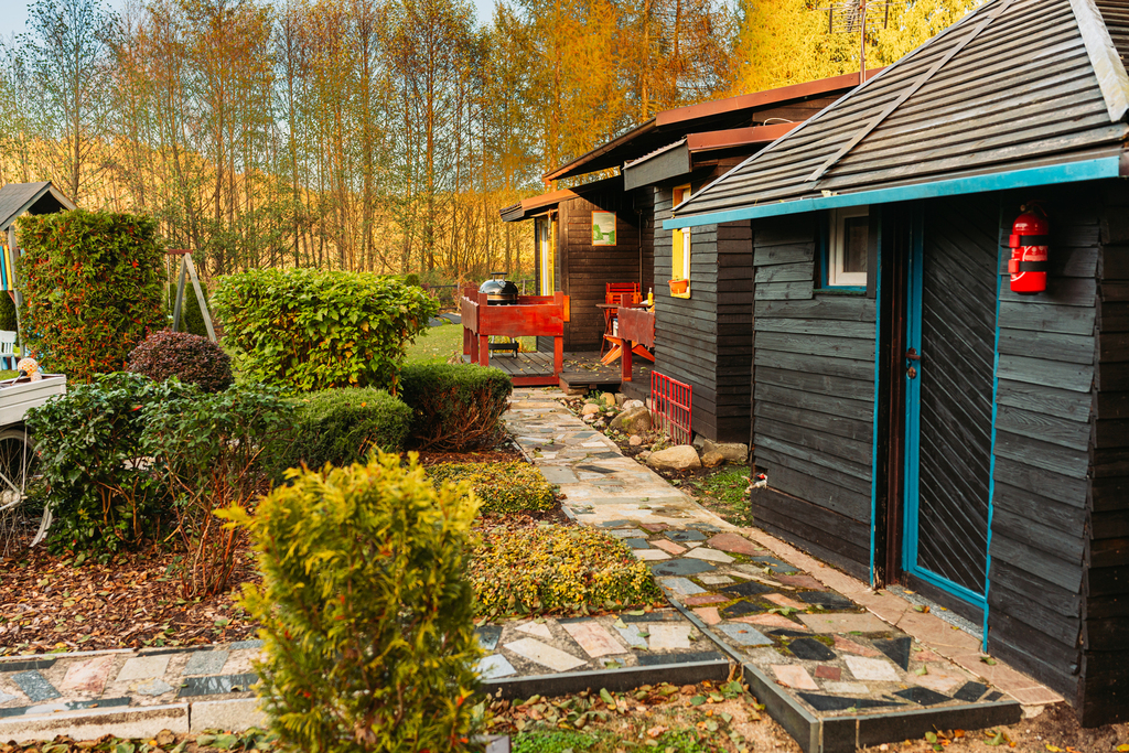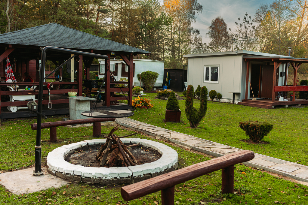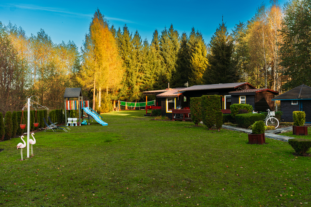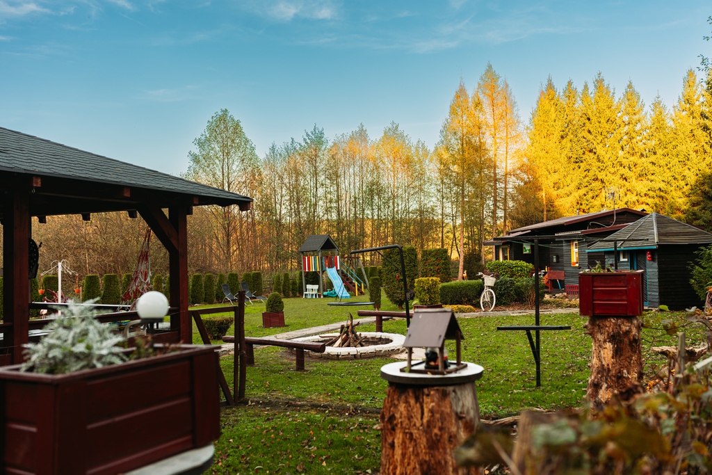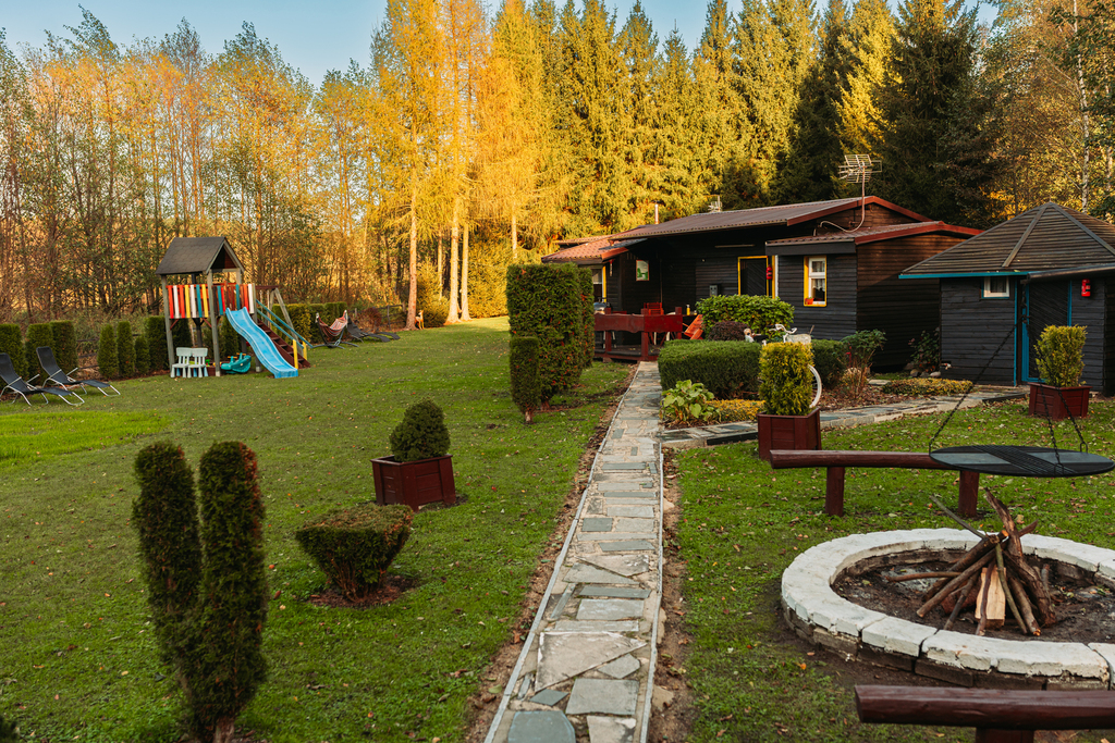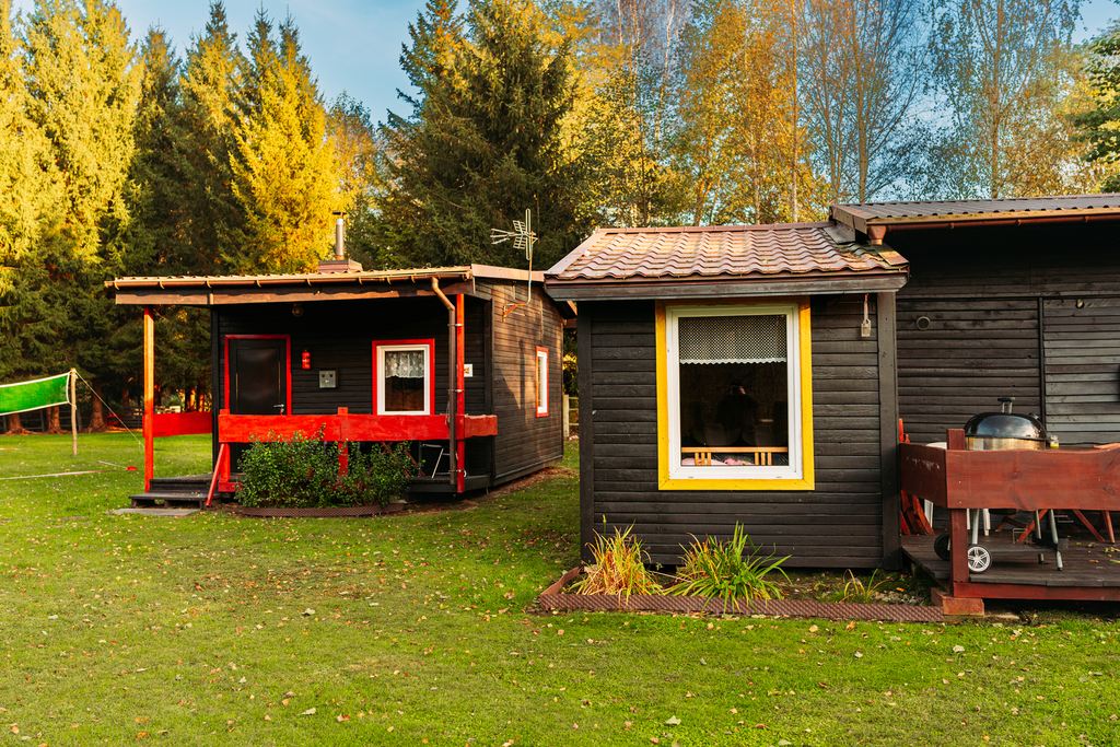 Wszystkie domki są ogrzewane kominkowo, co pozwala na komfortowy pobyt przez cały rok.