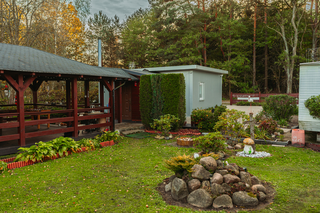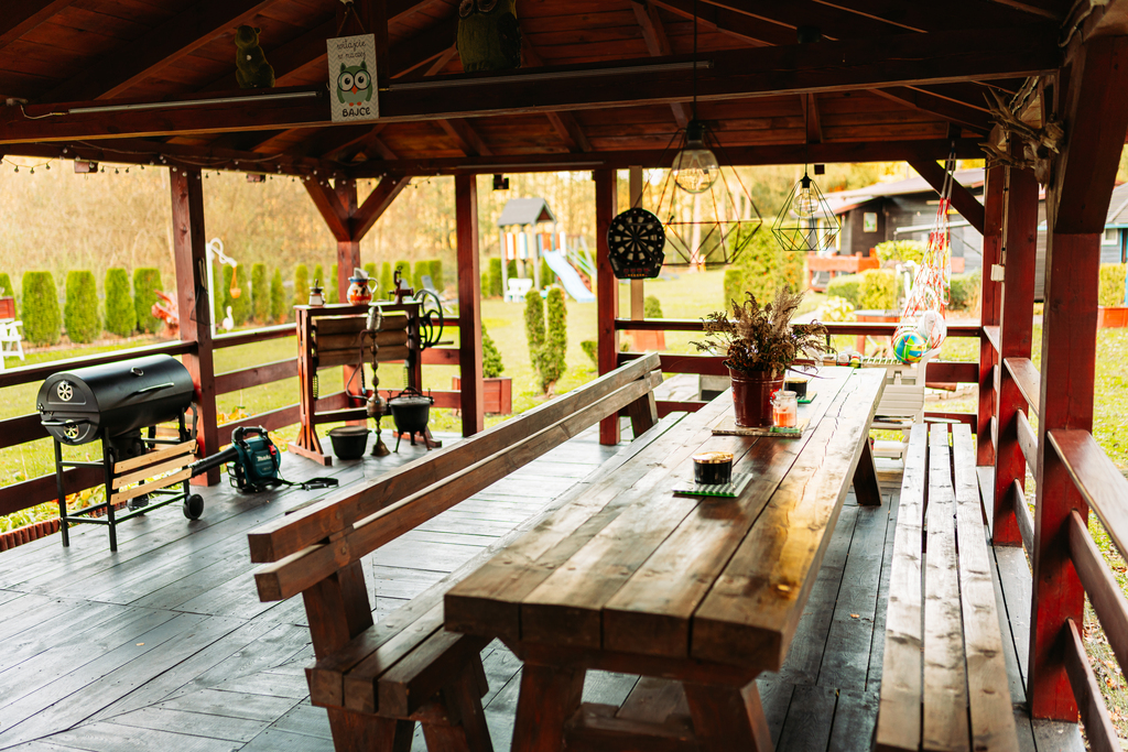 - Duża altana – z miejscem na spotkania towarzyskie i grill.