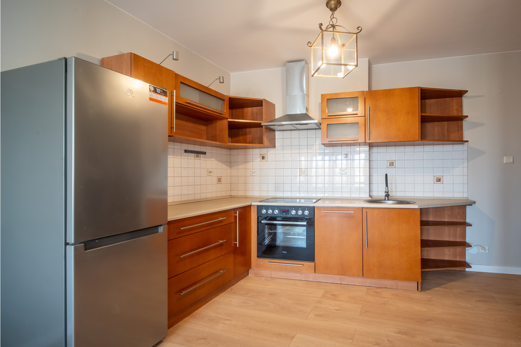 Mieszkanie jest częściowo po remoncie. W całym mieszkaniu wykonano podwieszane sufity. Mieszkanie zostało świeżo pomalowane. Wnętrze wyposażone jest w nowe sprzęty tj. piekarnik, płyta indukcyjna, zlew, okap. Na podłodze położono nowe panele Swiss Krono. Zamontowane są antywłamaniowe drzwi wejściowe. Na klatce znajdują się tylko dwa mieszkania . W lokalu podłączony jest światłowód i istnieje możliwość montażu klimatyzacji. Wymieniono wszystkie okna, nowe parapety z konglomeratu. Na ścianach wykonano gładź gipsową.