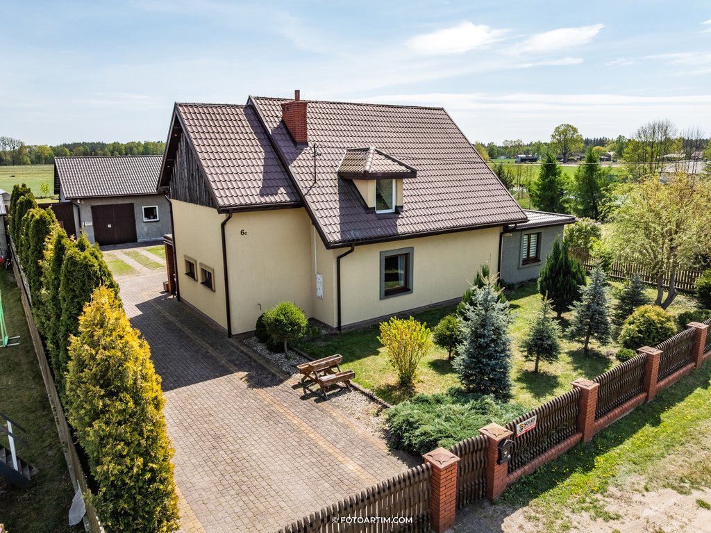 W skład oferty wchodzi przestronny dom jednorodzinny z użytkowym poddaszem oraz kompleksem budynków gospodarczych i garażowych, posadowionych na działce o powierzchni ok. 1253 m² .