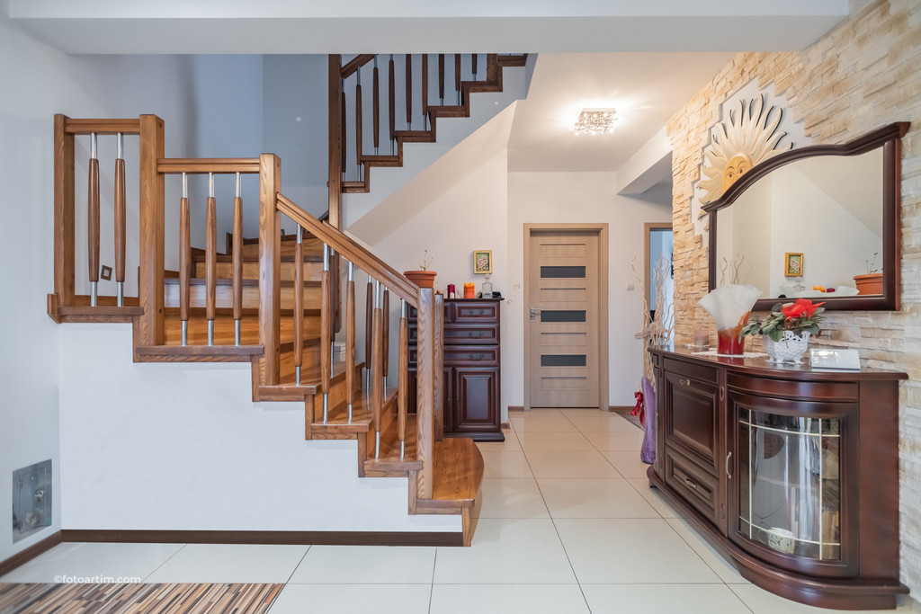 > Korytarz z zejściem do dużej piwnicy