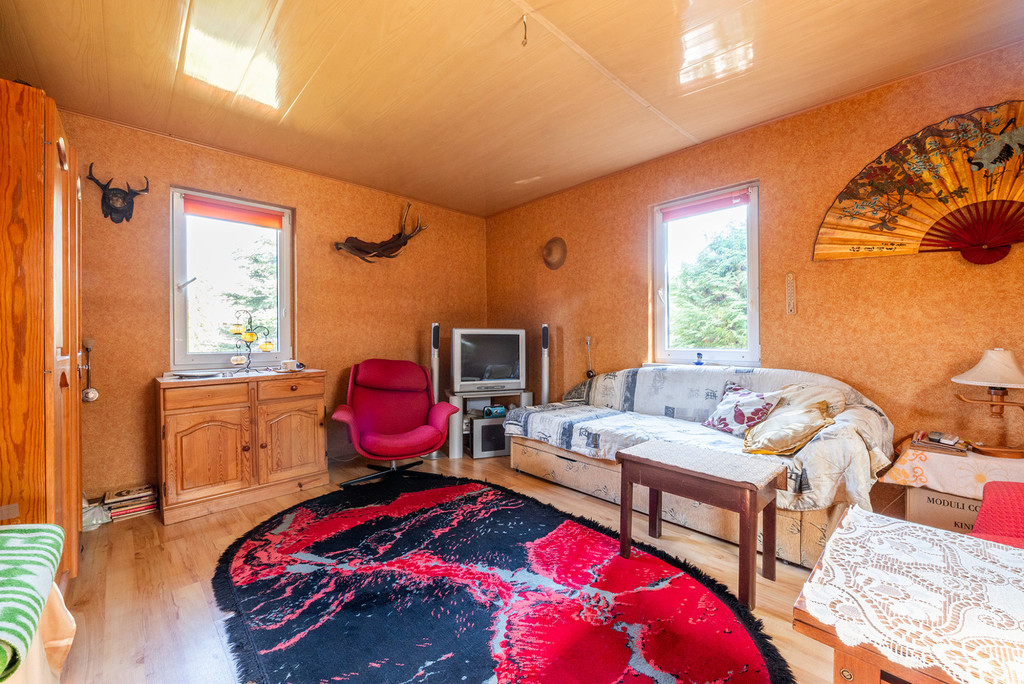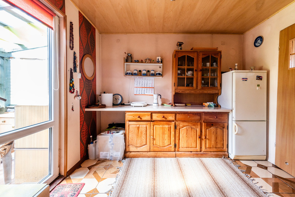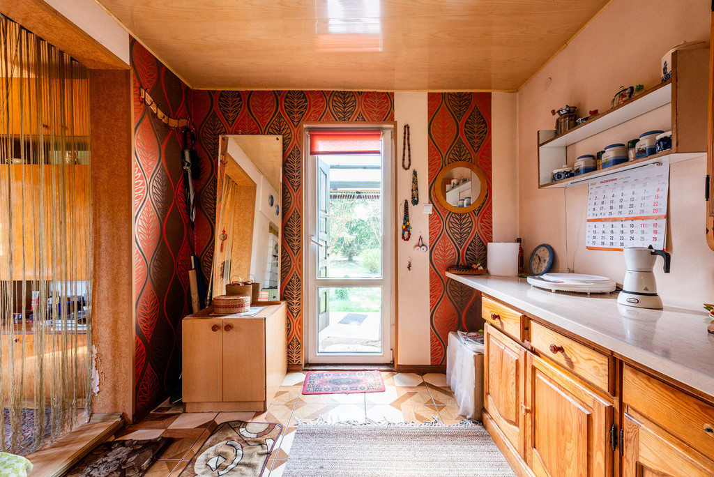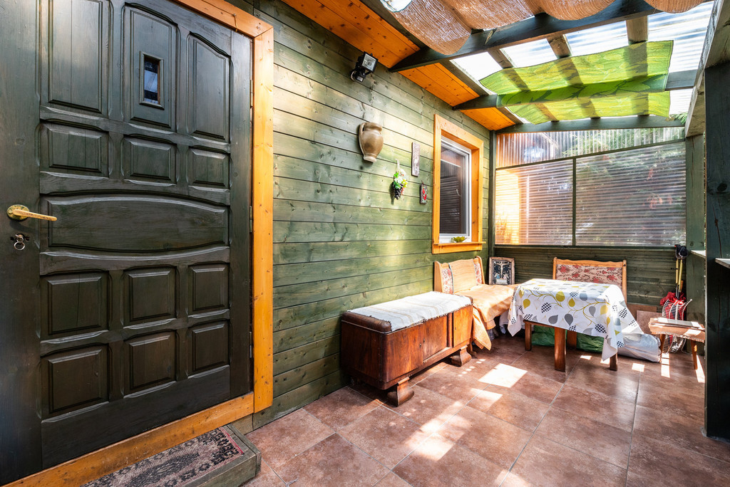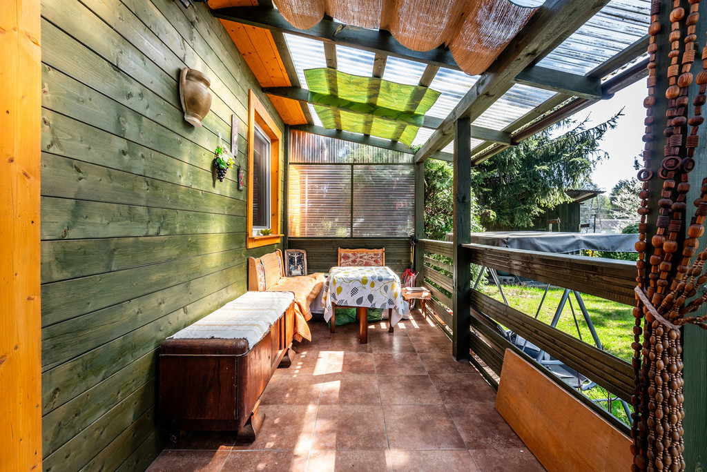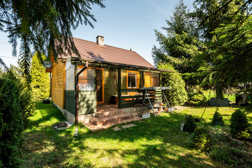 Omawiana nieruchomość to uroczy domek o metrażu 35 m2, który przeszedł gruntowny remont 10 lat temu. Elewacja wykonana jest z szalówki drewnianej z dekoracyjną obróbką okien, dach z blachodachówki, domek ocieplony jest watą, okna PVC (w każdym oknie są rolety). Przed domem jest weranda z widokiem na piękne, dające cień drzewa i krzewy rosnące na działce.