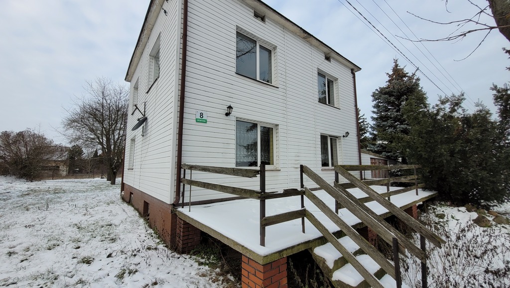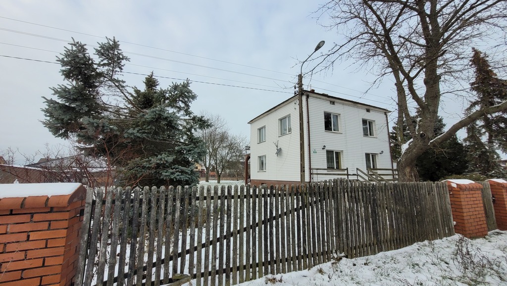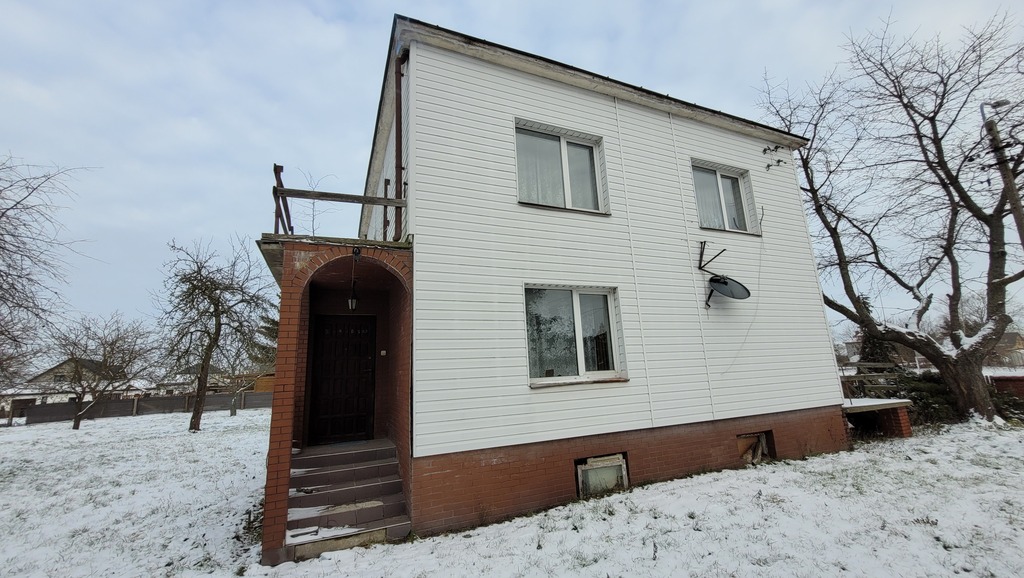 Dom jednorodzinny o powierzchni zabudowy 116 m2. Wybudowany w roku 1970, z cegły, ocieplony, wykonana elewacja z paneli Siding. Okna wymienione na PCV. Dom posiada dwa źródła ogrzewania, piec olejowy i piec węglowy. Media; prąd, woda z wodociągu miejskiego. Przy domu znajduje się również garaż na jedno auto. Nieruchomość do remontu.