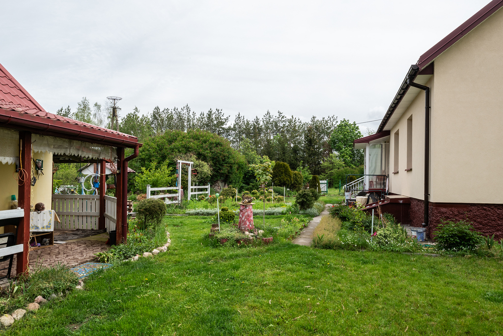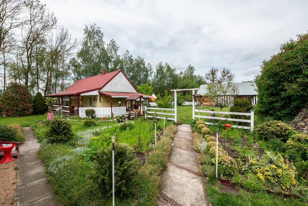 Całość otoczona jest dużym, zadbanym ogrodem, który stanowi doskonałą przestrzeń rekreacyjną – zarówno dla właścicieli, jak i turystów.