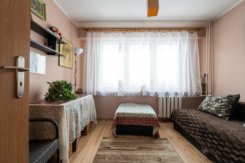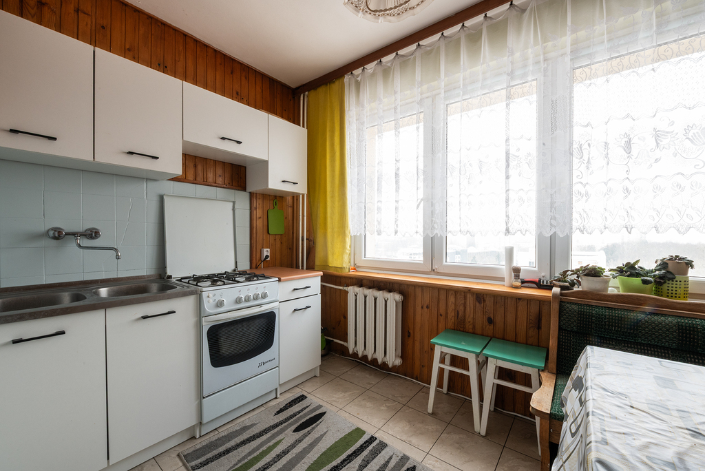 do remontu, jednak lokal jest zadbany, i na bieżąco użytkowany, co pozwala nowemu właścicielowi na stopniowe prace modernizacyjne lub pełną aranżację według własnych potrzeb i gustu. Układ pomieszczeń jest bardzo funkcjonalny, a wysoka kondygnacja gwarantuje dobre doświetlenie i prywatność.