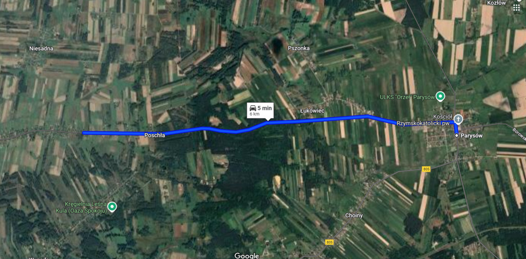• 6 km do Parysowa – w miejscowości pełna infrastruktura: szkoły, sklepy, urząd gminy, punkty usługowe