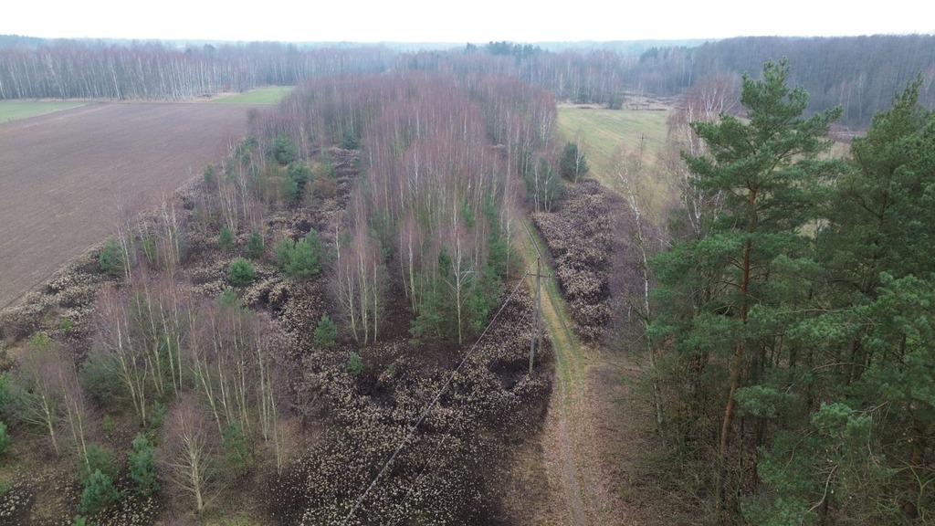Przez fragment kompleksu działek przebiega linia średniego napięcia – rozmieszczenie umożliwia swobodne zaplanowanie zabudowy w bezpiecznej odległości.