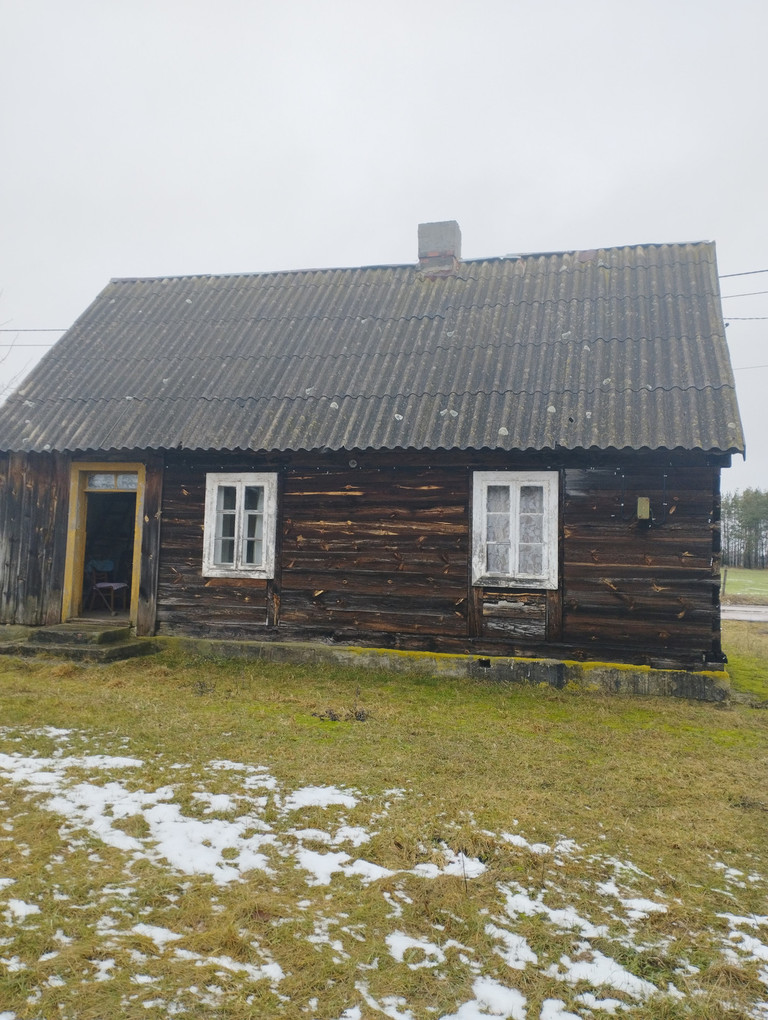 Nieruchomość ma dostęp do drogi publicznej, leży w otoczeniu zieleni i niewielkich podobnych sobie zabudowań. Budynek mieszkalny o powierzchni 59m2  jest niepodpiwniczony i parterowy. Wykonany z drewna, dach pokryty jest eternitem. Wybudowany w latach 1950. Dom jest widny, ma drewniane podłogi i drewniany strop, niewątpliwie stylowy i z potencjałem. Posiada kuchnię, pokój i pomieszczenie wydzielone na łazienkę. Budynek wyposażony w instalację elektryczną i wodną. Wymaga kapitalnego remontu.