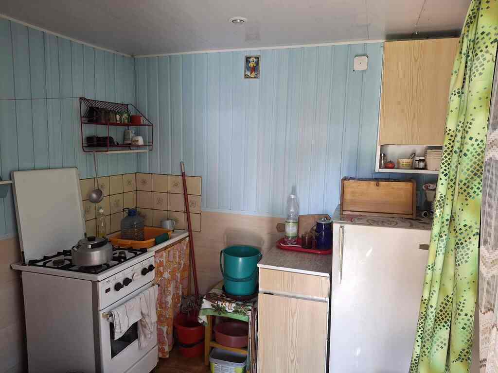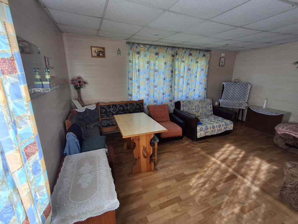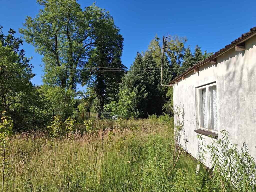 Budynek parterowy drewniany - do remontu lub rozbiórki, ocieplony styropianem i otynkowany. Dach kryty płytą falistą.