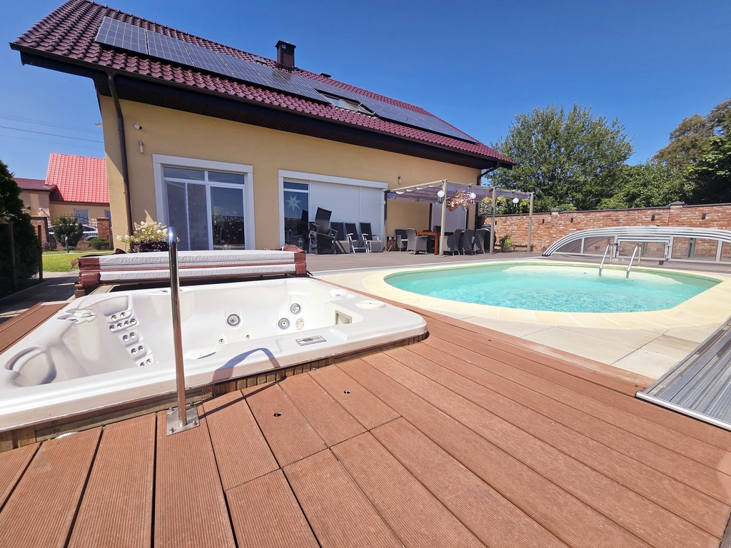 Rezydencja jest energooszczędna- ocieplana jest przy użyciu pompy ciepła Solary który również ogrzewa wodę w basenie. Na działce zainstalowano panele fotowoltaiczne. Ponadto w budynku wszystkie okna są dwuszybowe PCV w stanie idealnym . Na wypadek braku prądu w budynku zainstalowany został generator prądotwórczy( 450 kW)