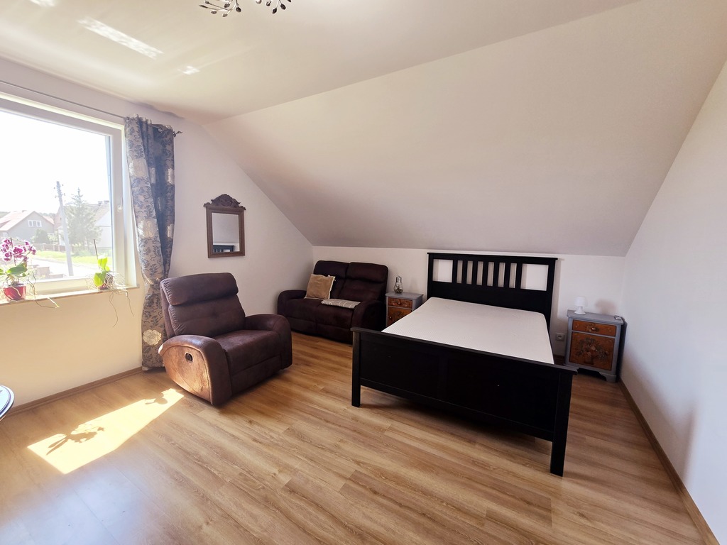 - przestronna kuchnia wraz z jadalnią 28,64m2, składająca się z dwóch połączonych pomieszczeń w pełni wyposażona w sprzęty AGD,