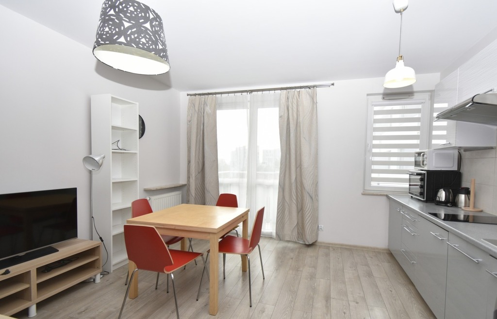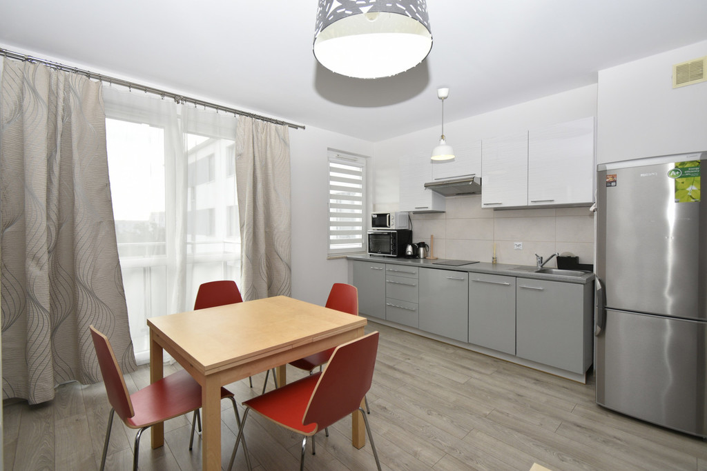 Wyposażone jest w meble, sprzęt AGD - chłodziarko-zamrażarkę, piekarnik, zmywarkę, pralkę.