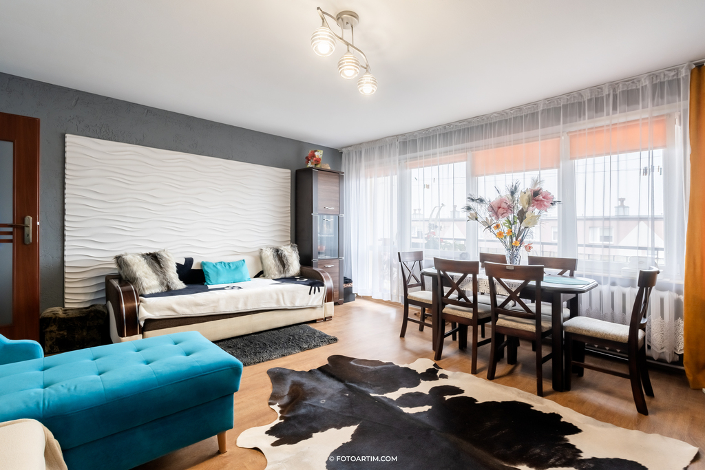Mieszkanie dwustronne, z bardzo dobrym rozkładem, o powierzchni użytkowej 60,75 m2.