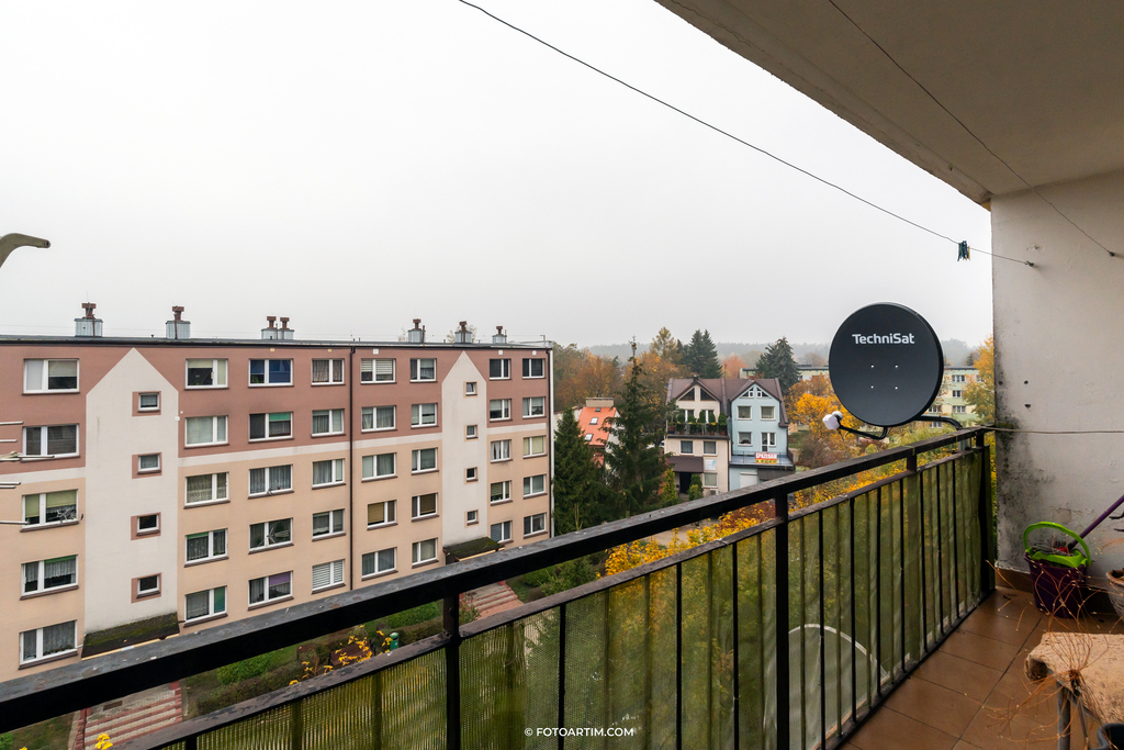 Znajduje się na IV piętrze w niskim bloku.