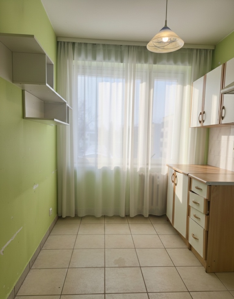 Okna wychodzą na stronę południową i północną i są drewniane. Elewacja budynku została odnowiona, mieszkanie wyposażone jest w wideodomofon. Salon od strony południowej zapewnia dużo promieni słonecznych.