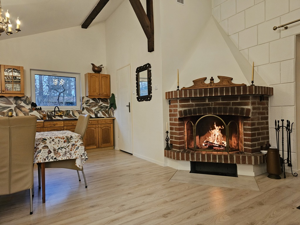 Wyobraź sobie miejsce, w którym czeka na Ciebie ciepło kominka i przestronny salon z oknami na las. Gdzie każdy dzień zaczynasz od filiżanki kawy na drewnianym tarasie, otoczony ciszą i zapachem lasu. Ten dom spełni marzenia tych, którzy chcą mieszkać w komforcie blisko natury i jednocześnie mieć dostęp do miasta. Dom pachnie nowością - czeka na pierwszego mieszkańca, który uczyni go swoim wymarzonym miejscem.