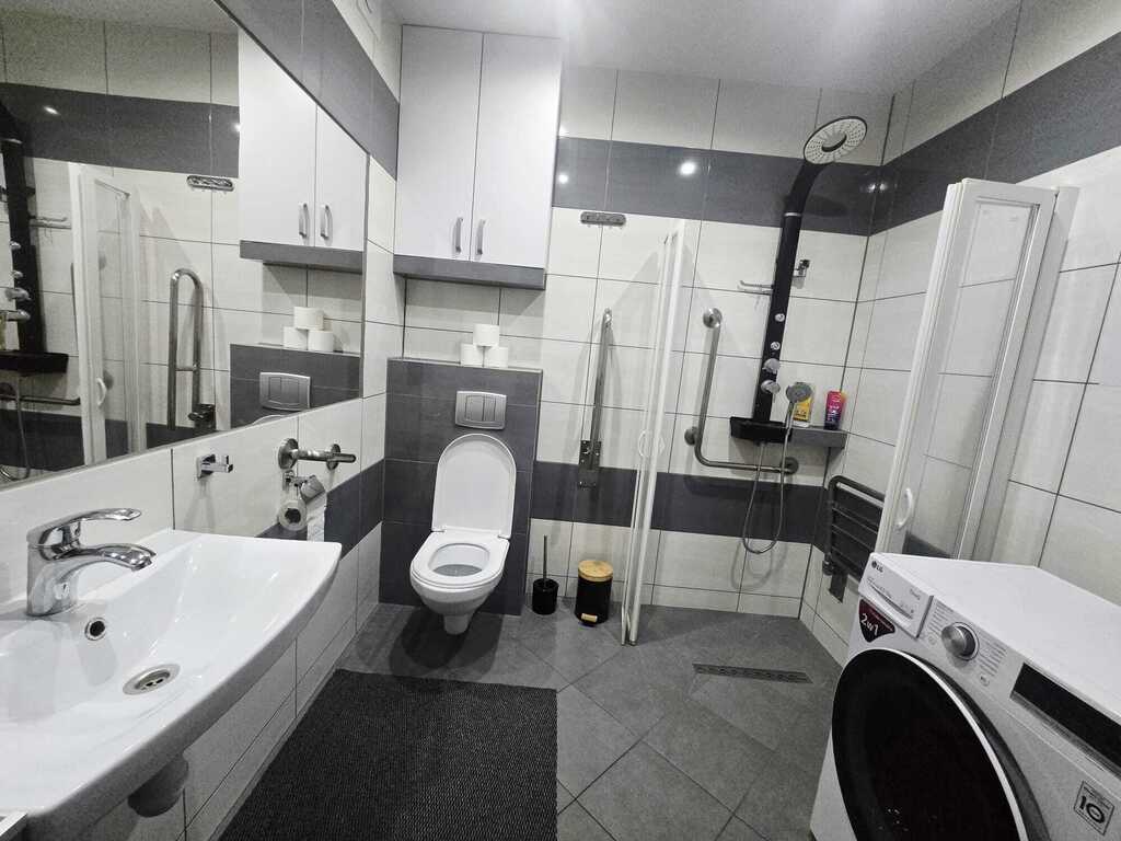 - łazienka wyposażona w wygodny prysznic ( brak barier architektonicznych)
