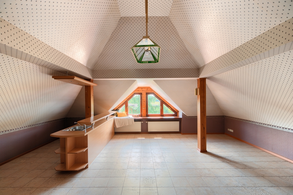Przestrzeń i układ Dom został zaprojektowany tak, aby zapewnić wygodę życia i pracy. Na dwóch kondygnacjach znajdują się przestronne sypialnie z wyjściami na tarasy i balkony, salon z kominkiem i jadalnią, duża kuchnia z miejscem do wspólnych spotkań, gabinet oraz pokój rekreacyjny z przeznaczeniem np. na fitness czy strefę relaksu. Wnętrza są pełne światła, a ich układ pozwala na elastyczną aranżację.