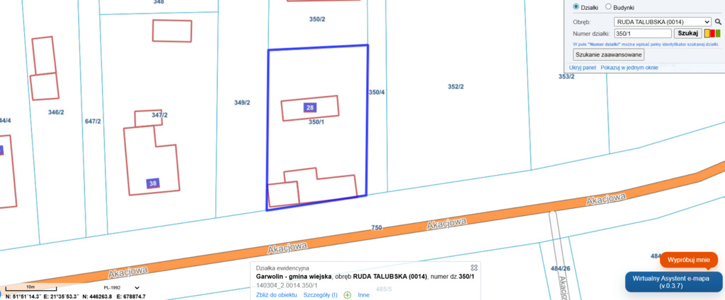 Na sprzedaż działka budowlana o powierzchni 624 m², położona w miejscowości Ruda Talubska, gmina Garwolin, powiat garwoliński, woj. mazowieckie (ul. Akacjowa).