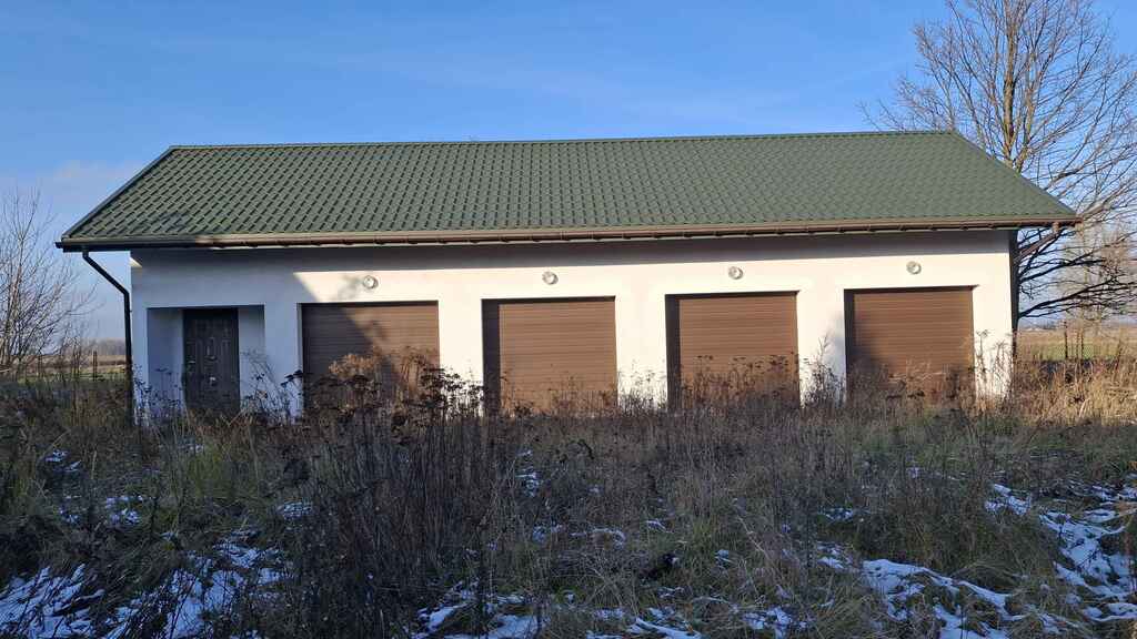 BUDYNEK GARAŻOWY – 120,40 m² (2018 r.) Duży budynek czterostanowiskowy, dwukondygnacyjny, solidnie wykonany.