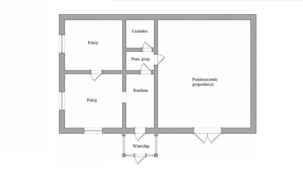 Dodatkowo w drugiej połowie budynku znajduje się pomieszczenie gospodarcze (widoczne na rzutach).