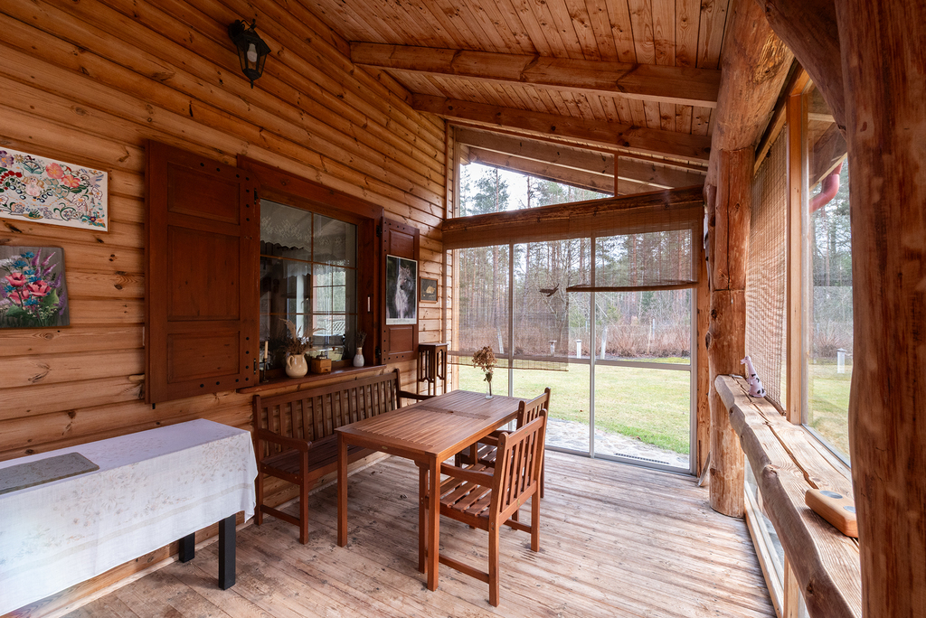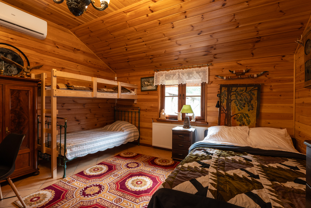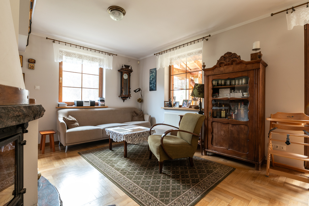 • Stylowe wykończenie: parkiet dębowy, drewniana elewacja, zabudowany i oszklony taras