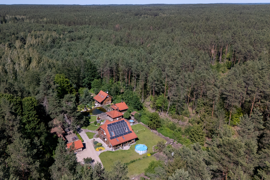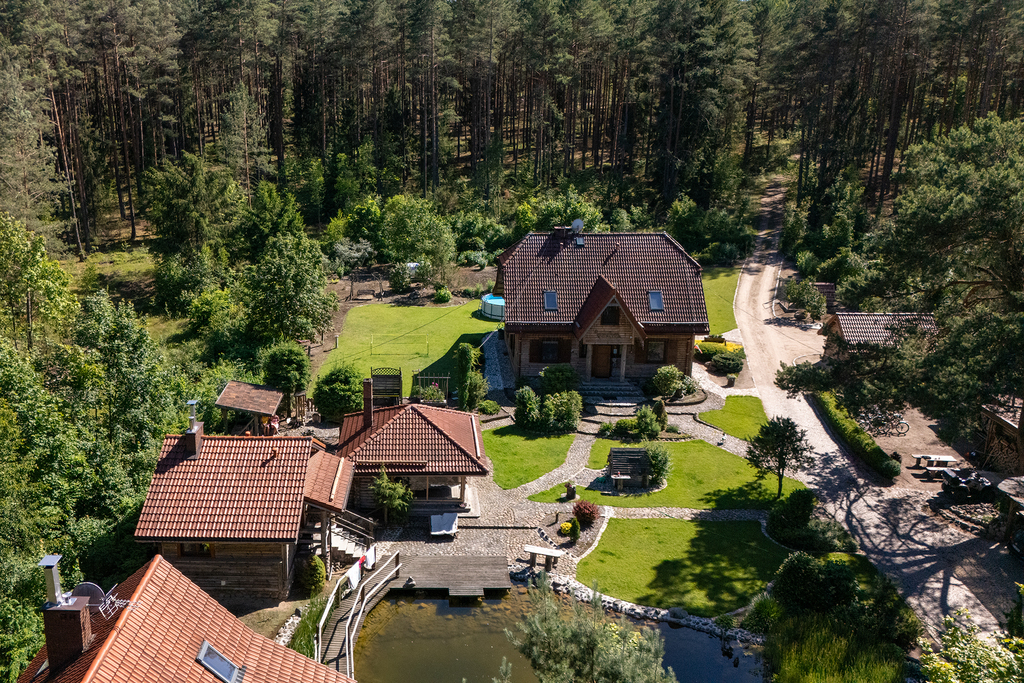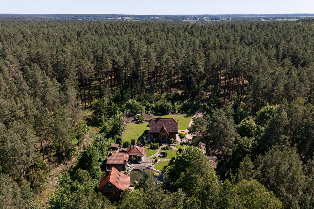 Posiadłość położona jest w otoczeniu lasów, co gwarantuje pełną prywatność i ciszę. To idealne miejsce dla osób szukających oazy spokoju, z dala od miejskiego zgiełku.