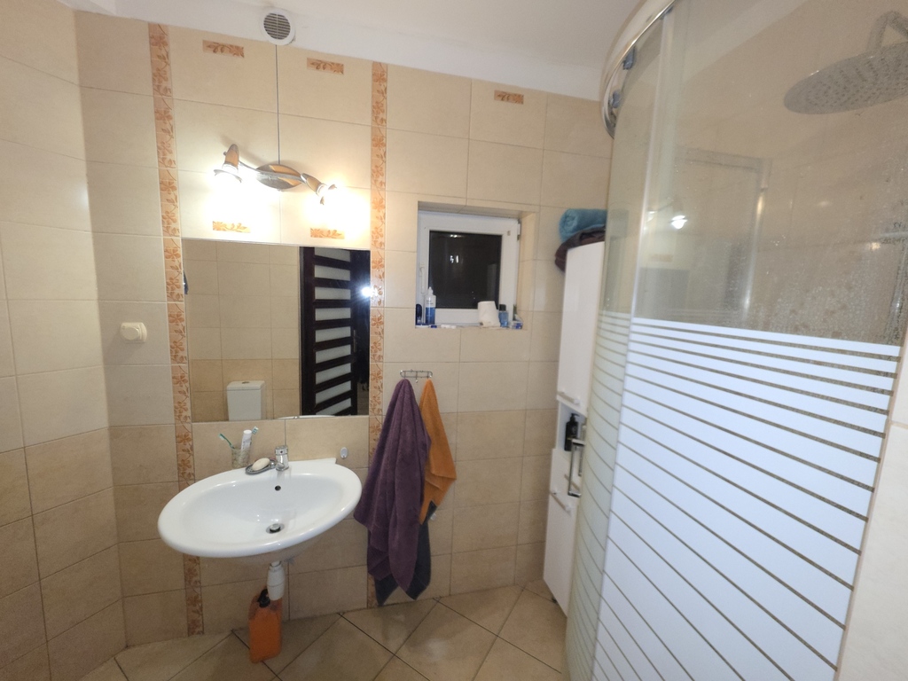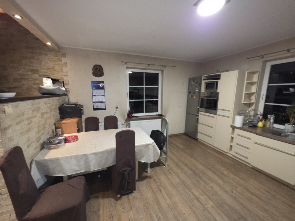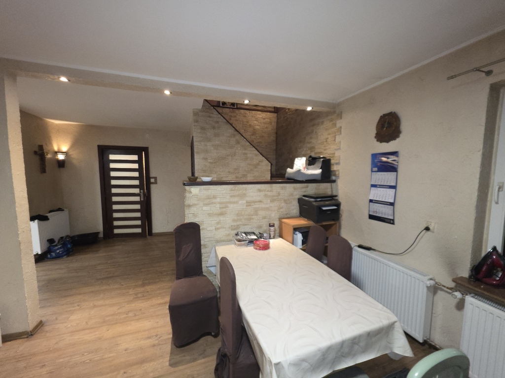 Dom jest ocieplony i zadbany, a na dachu znajduje się instalacja fotowoltaiczna, co pozwala na znaczną redukcję wydatków na energię elektryczną oraz wspiera ekonomię ogrzewania..