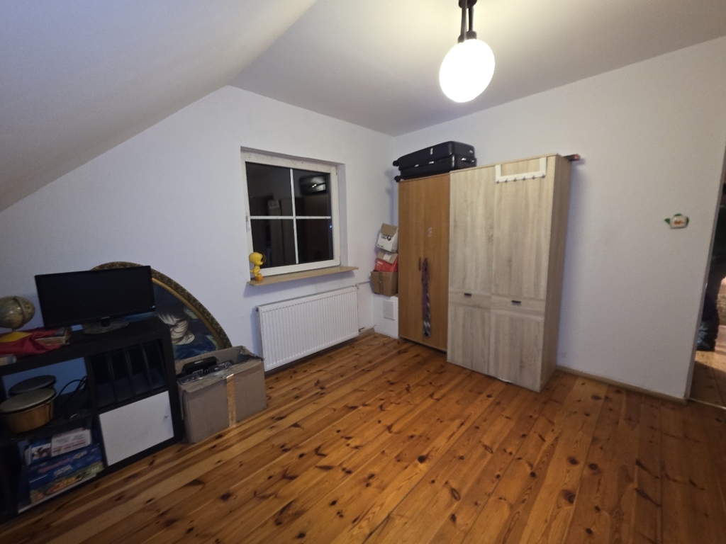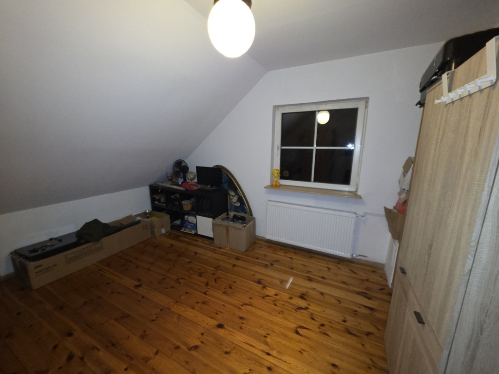 a) 5 pokoi (przestronny salon wraz z kominkiem na parterze, 4 pokoje na piętrze oraz możliwość zagospodarowania poddasza budynku),